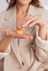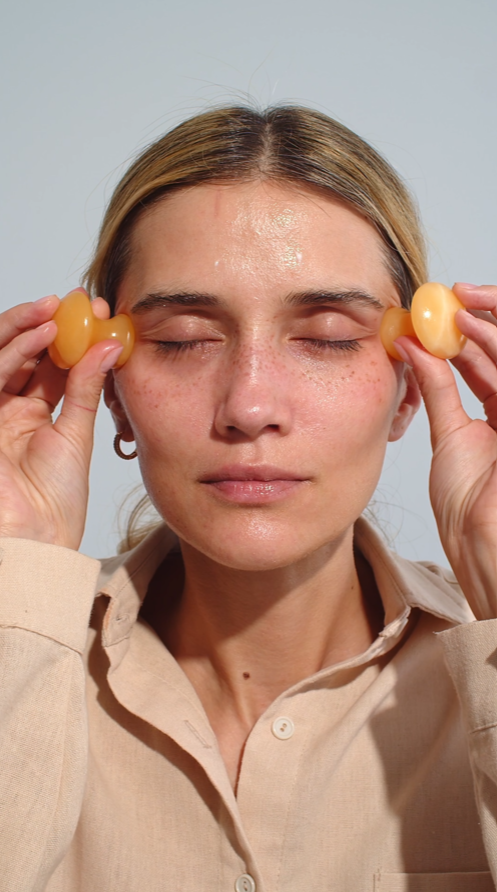 The Yellow Topaz feels instantly cooling and soothing on puffy eyes and skin, while the Gua Sha’s rounded mushroom shape allows you to stimulate lymph flow in the gentlest way. The curved tool rolls and glides underneath your eyes, over the face and down the neck, helping to ease puffiness for a fresh, sculpted and reawakened look.